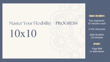 A flexibility course designed for real life. With my unique 5x5x5 and 10x10 class formats, you’ll target major muscle groups in short, stackable sections, so you can finish a full practice or just one part. No pressure, no failure, just daily wins. And when you’re ready to go deeper, there’s a full 27-minute class waiting for you.